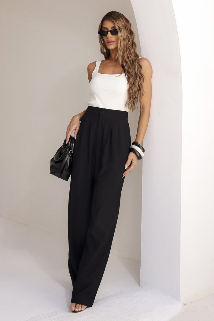 Calça de alfaiataria com modelagem reta e solta. Possui pregas frontais e bolsos laterais, ideal para um visual elegante e confortável...Ler