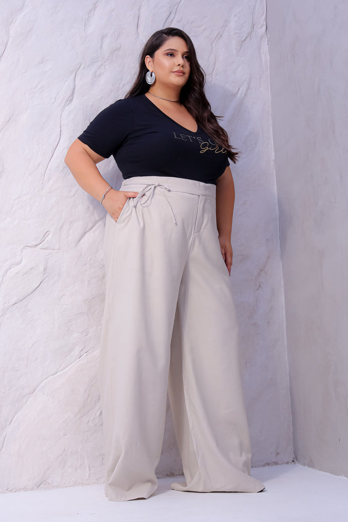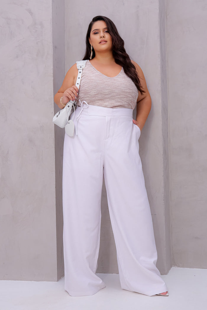 Calça de linho sofisticada, com botão interno, zíper de nylon e cós ajustável com elástico na parte traseira. Possui detalhe de amarração lateral para um toque de estilo e modernidade...Ler
